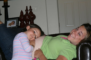 Kynlee kisses my belly at least 20 times a day. The other night she was whispering into by belly button and telling him how much she loves him. Then she informs us that the baby is talking back and she can hear him. She likes to look at the roundness of my belly and guess where his hands are and then guesses where is his head is so she can give him a kiss. We will sit on the couch at night and she holds super still with her hand on my belly so she can feel him move. She can sit like that for hours (if I would let her). I love how she loves him so much already. This is going to be the luckiest baby ever. With all the love that already goes his way and he isn't even here yet, I can't imagine how much love there will be when we can hold him, smell him and kiss him. Hurry up little guy you have people waiting..jpg)